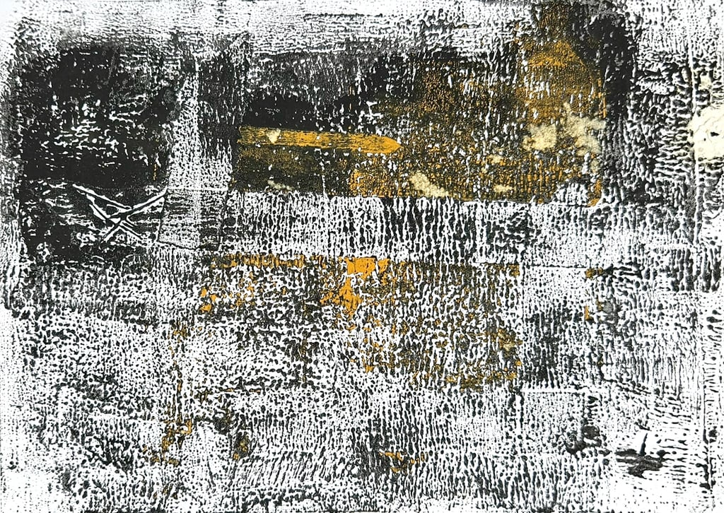This series was produced during a residency in the rural west of Ireland alongside the Irish-American printmaker Diane Roemer. The process involved building up ochre and black layers of acrylic whilst embedding paper fragments, interrupting the site to leave spatial impressions. The approach was slow and procedural, not unlike the sedimentation of landscapes. The surface of the canvas becomes the terrain, with architectural voids acting as a counterpoint to the landscape, rather than filling it. The paintings are structured by a logic of tension between field and boundary.
