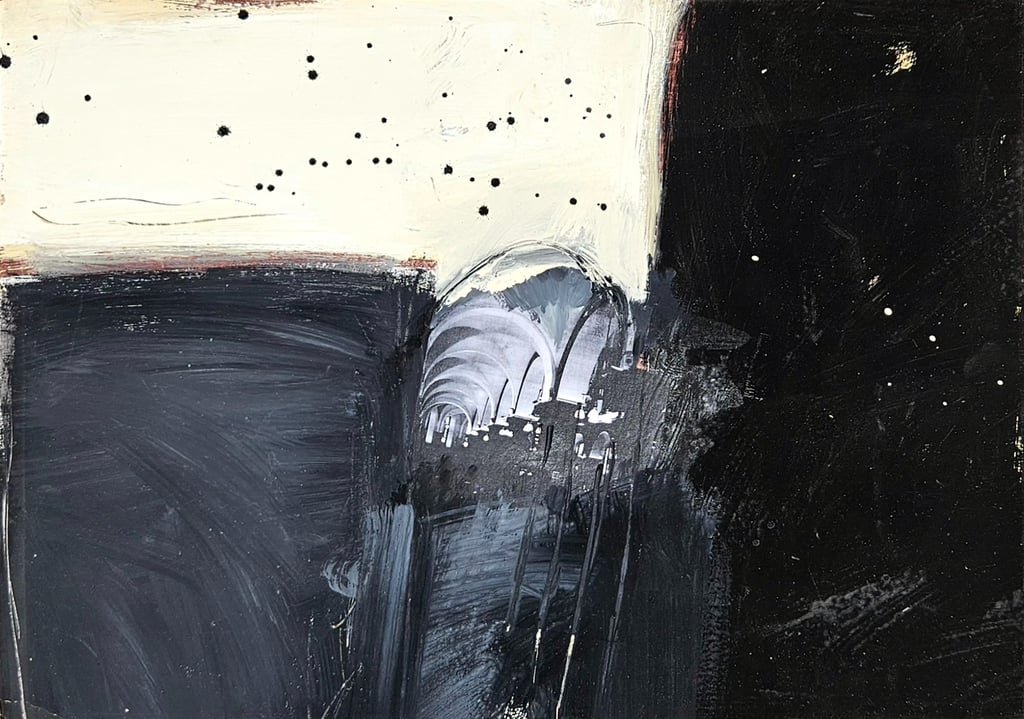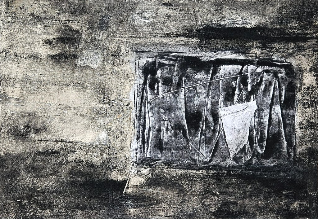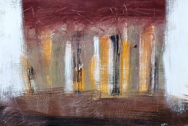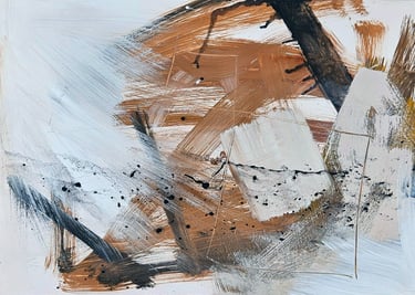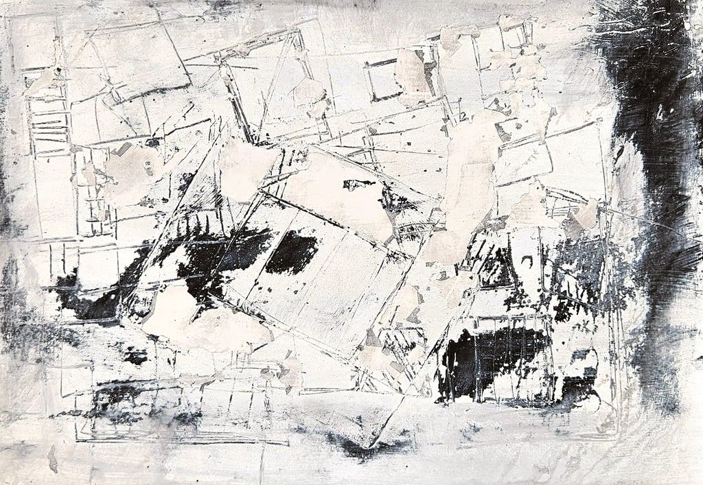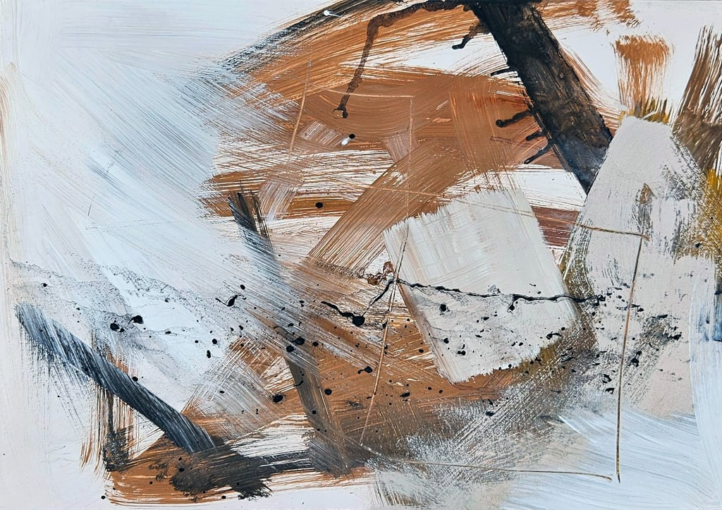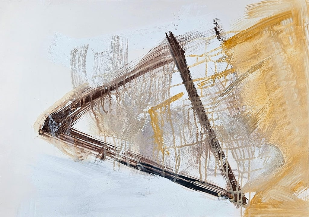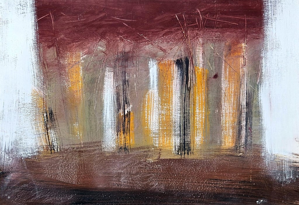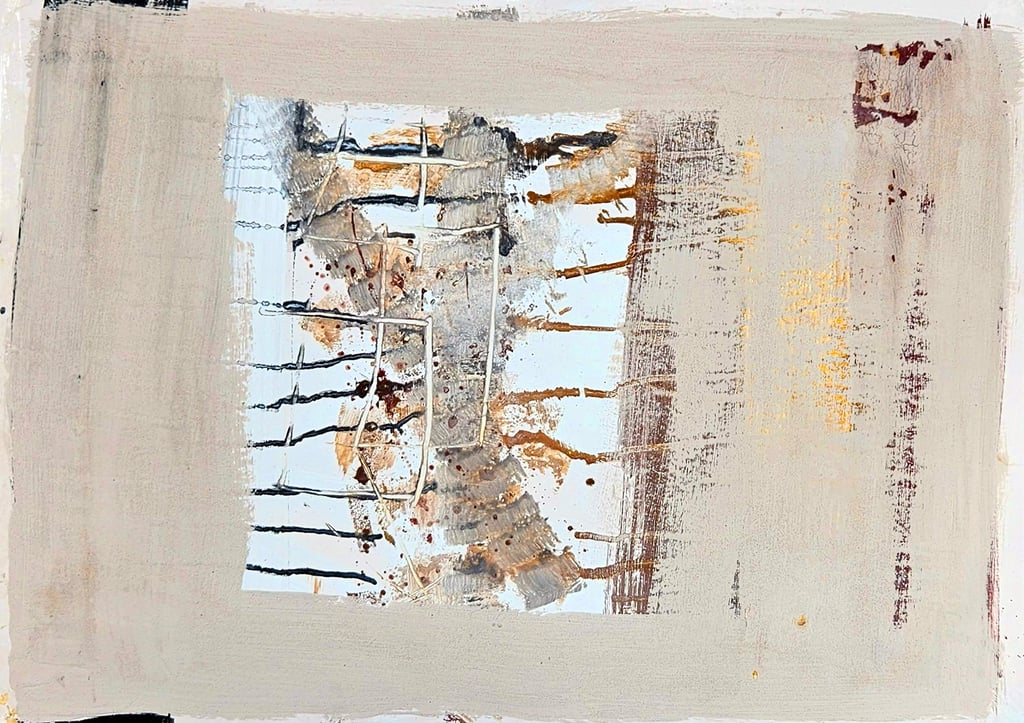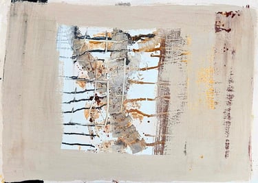 Acrylic, soil, collage and sand on card